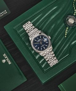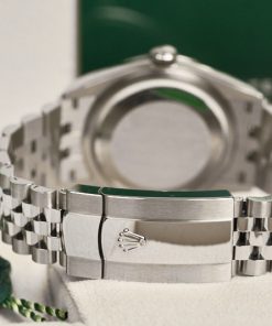 Không những vậy, Rolex Datejust 36 Blue Motif 126200 sở hữu bộ dây đeo Oyster Jubilee 5 mối nối cùng với khóa gập ẩn Crownclasp đã vượt qua các bài kiểm tra nghiêm ngặt mang tính ứng dụng cao, chắc chắn sẽ mang lại sự thoải mái tối ưu cho cổ tay của người đeo.