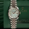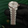 • Dial: mặt xà cừ trắng, kim, cọc số bằng vàng 18k, cọc số đính 10 viên kim cương tự nhiên