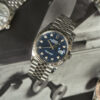 Điểm thêm cho sự hào nhoáng của mặt số là 10 cọc số được đính kim cương tỉ mỉ, cùng bộ kim chỉ giờ đồng bộ màu vàng trắng càng làm tăng thêm vẻ đẹp sang trọng cho chiếc đồng hồ.