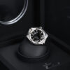 Mặt số đồng hồ được thiết kế với các chi tiết ziczac độc đáo trên bộ vỏ bằng titanium được nạm 210 viên kim cương tự nhiên, tạo nên sự khác biệt và nổi bật.