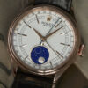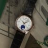Rolex Cellini Moonphase chế tác với bộ bỏ từ vàng hồng 18ct Everose – chất liệu độc quyền của Rolex, mang lại vẻ đẹp toát lên từ ánh hồng ấm áp, kết hợp hài hòa cùng dây đeo tay da cá sấu nâu khỏe khoắn. Chiếc đồng hồ kích thước 39mm rất vừa vặn khi đeo trên cổ tay của những quý ông.