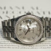 • Dial: mặt xà cừ trắng, kim, cọc số bằng vàng 18k, cọc số đính 10 viên kim cương tự nhiên