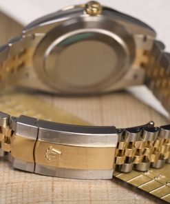 Datejust 126233 sở hữu những đặc trưng mà chỉ cần nhìn qua cũng biết đó là một đặc sản của Rolex: kính Cyclops phóng đại ô cửa sổ lịch ngày bên dưới mặt số, vành bezel rãnh sáng bóng và đều đặn, bộ dây Jubilee được chế tác hoàn chỉnh, đeo lên tay rất thoải mái và dĩ nhiên không thể thiếu dấu ấn vương miện bằng vàng nhỏ xinh nhưng đầy quyền uy trên mặt số.