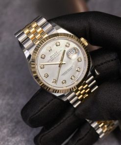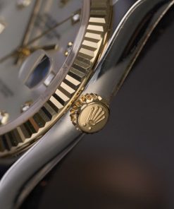 Ôm trọn lấy mặt số tinh xảo được chế tác hết sức kỳ công. MOP – Mother of Pearl: thuật ngữ được sử dụng cho lớp bề mặt sử dụng lớp xà cừ của vỏ trai. Rolex chỉ sử dụng lớp xà cừ thiên nhiên cho những mẫu đồng hồ cao cấp của hãng.
