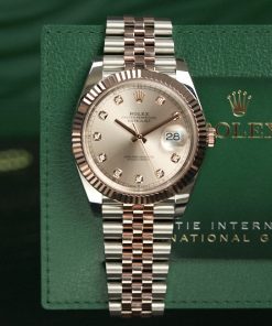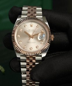 Sở hữu vóc dáng “kinh điển” với dây Jubilee và mặt số 41mm, chiếc đồng hồ là một nguyên mẫu Rolesor bởi sự kết hợp giữa hai chất liệu chính là vàng hồng Everose 18K và thép không gỉ 904L.