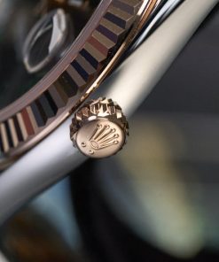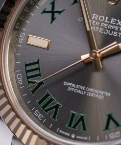 Khác với những thiết kế truyền thống của Ro.lex, mẫu Rolex Date.just 126331 sở hữu một mặt số khá phá cách, với bộ cọc số đặc biệt. Cùng là số La Mã, nhưng bộ cọc số của chiếc 126331 được kết hợp giữa màu đen và xanh lá, tạo cảm giác rất đặc biệt. Xen lẫn giữa những cọc số La Mã là một cọc số duy nhất ở góc 9 giờ phủ chất phát quang, giúp người dùng có thể dễ dàng hơn trong việc xem giờ trong bóng tối.