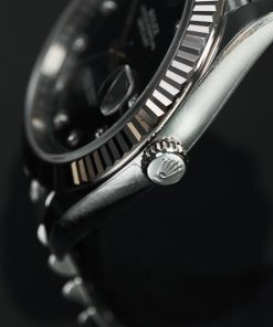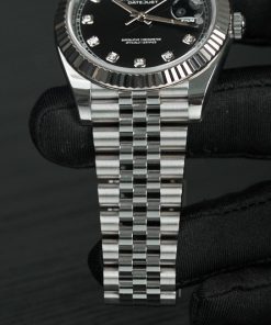 Mặt số đồng hồ màu đen cùng cọc số kim cương đẳng cấp, kết hợp với dây đeo Jubilee tạo nên một dáng vẻ xinh đẹp hoàn mỹ.