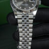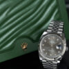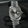 Mặt số màu xám với lớp hoàn thiện tia nắng tạo ra sự phản chiếu ánh sáng tinh tế được khuếch tán nhất quán dọc theo mỗi bản khắc, tạo ra ánh sáng tinh tế đặc trưng di chuyển tùy theo vị trí của cổ tay. Các điểm chỉ giờ nạm kim cương sáng nổi bật tạo nên một tổng thể hoàn hảo.