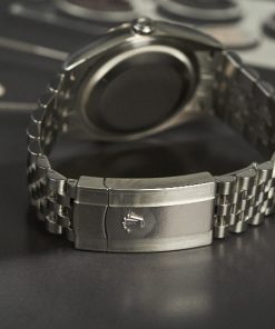 Chiếc đồng hồ sở hữu mặt số hình tròn với đường kính 41mm. Vỏ được hoàn thiện từ chất liệu thép không gỉ và vành bezel từ vàng trắng 18k được đánh bóng sáng hoàn hảo cùng dây đeo từ thép không gỉ cao cấp cứng cáp, chịu lực tốt và hạn chế trầy xước tốt với độ bền cao.
