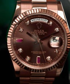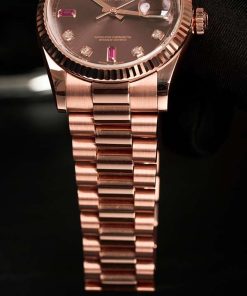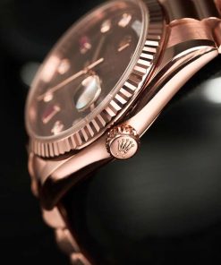 • Dial: Màu chocolate, góc 6h và 9h được làm từ hai viên đá Ruby đỏ
