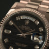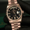 Vỏ đồng hồ được làm từ vàng hồng 18k, Đường kính vỏ là 36mm, là kích thước cổ điển và phổ biến trong dòng Day-Date, phù hợp với nhiều kích cỡ cổ tay và mang lại vẻ thanh lịch.