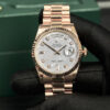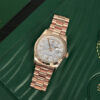Chiếc đồng hồ sở hữu phần dây President được làm từ vàng hồng Everose nguyên khối 18k, chất liệu đình đám và độc quyền của Rolex, chứa trong đó 2% Bạch kim giúp màu hồng trong vàng được bền và sáng bóng hơn rất nhiều.