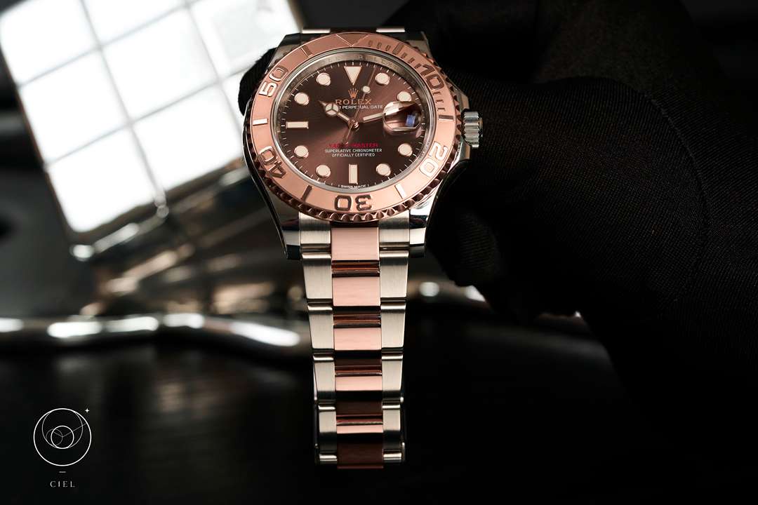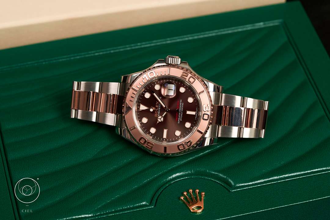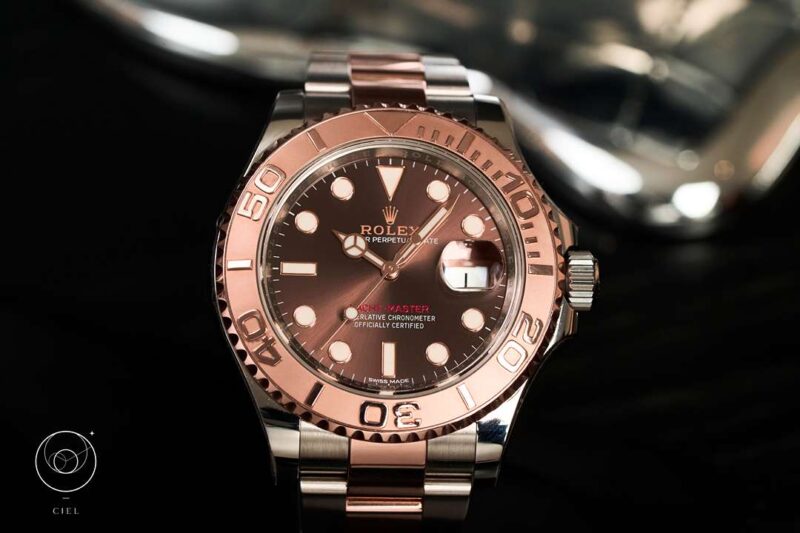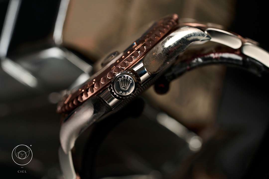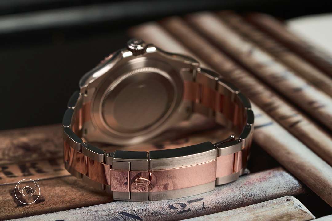 • Chất liệu vỏ: Thép Oystersteel kết hợp vàng hồng 18k